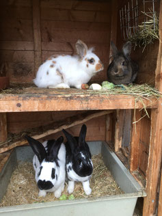 unserer Katze Lily und unsere vier Hasen Nera, Albin, Fix und Foxi.